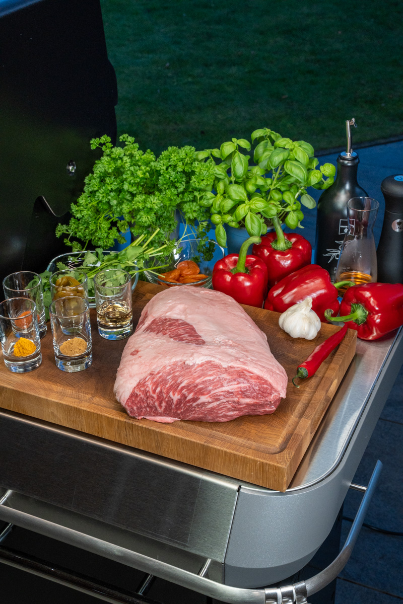 Heute widmen wir uns einem ganz besonderen Stück Fleisch: Einem beeindruckenden 2,5 kg schweren F1 Wagyu-Angus Tafelspitz von Albers, welches wir ganz klassisch als Picanha zubereiten.