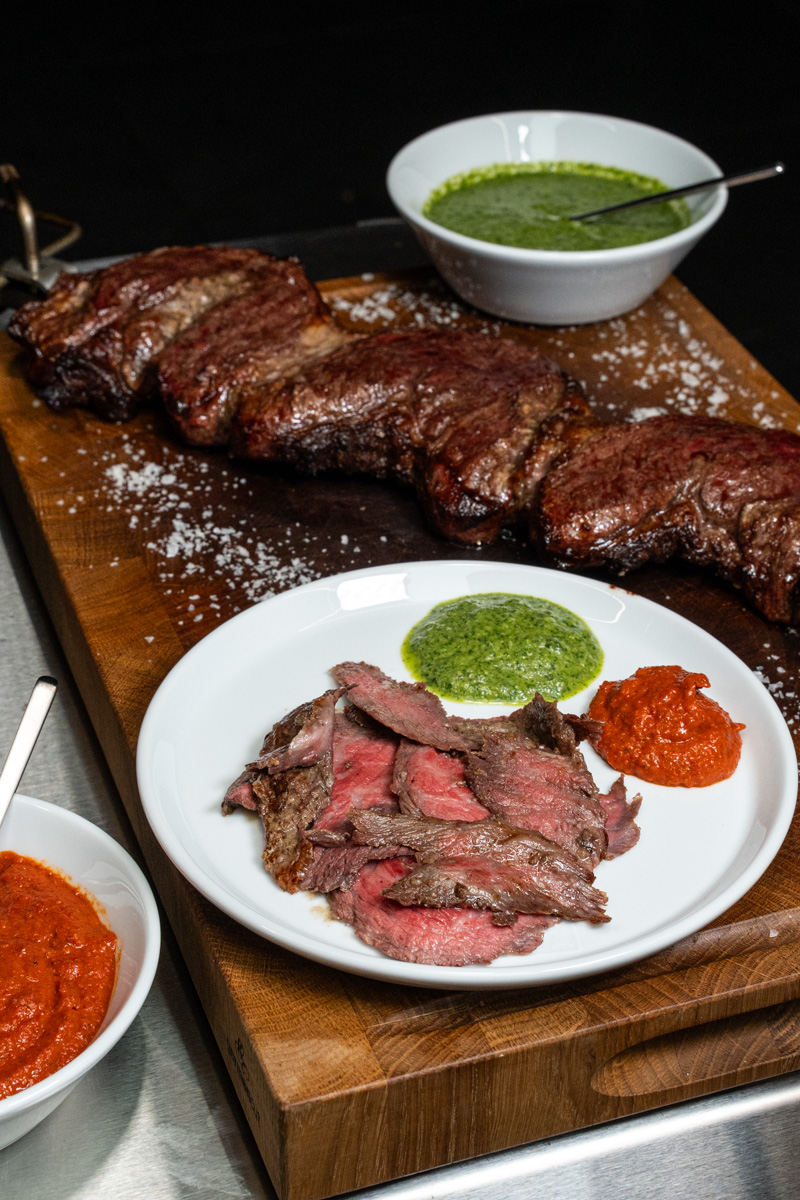 Traditionell wird Picanha häufig mit Chimichurri serviert. Wir wollten jedoch bewusst neue Wege gehen und haben uns für zwei spannende Alternativen entschieden: Ein scharfes Mojo Verde sowie ein aromatisches Mojo Rojo. Während das Mojo Verde mit frischen Kräutern, Knoblauch und einer angenehmen Schärfe punktet, bringt das Mojo Rojo eine tiefere, würzigere Note mit Paprika und Knoblauch ins Spiel. Beide Saucen ergänzen das Fleisch perfekt und sorgen für eine spannende geschmackliche Abwechslung.