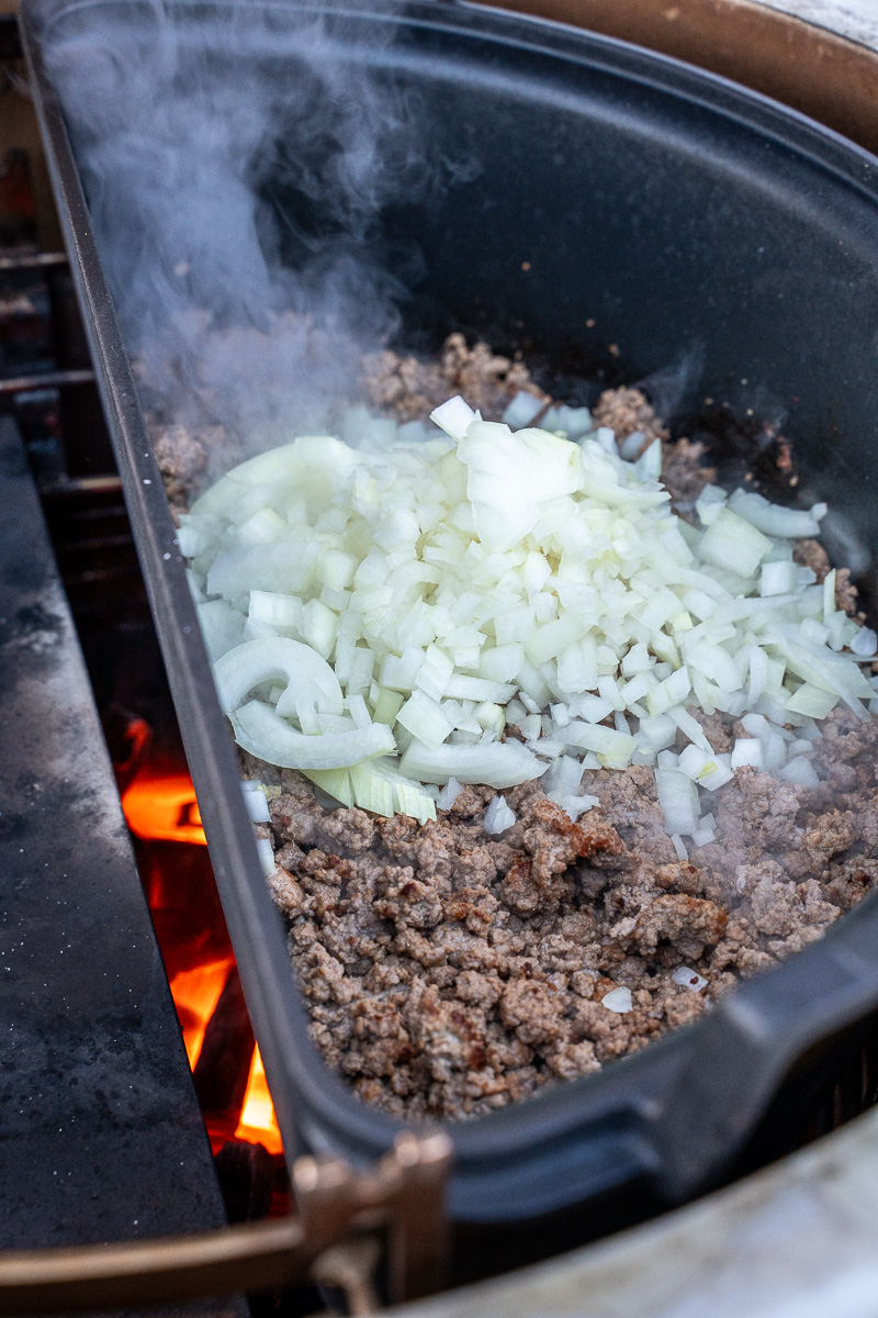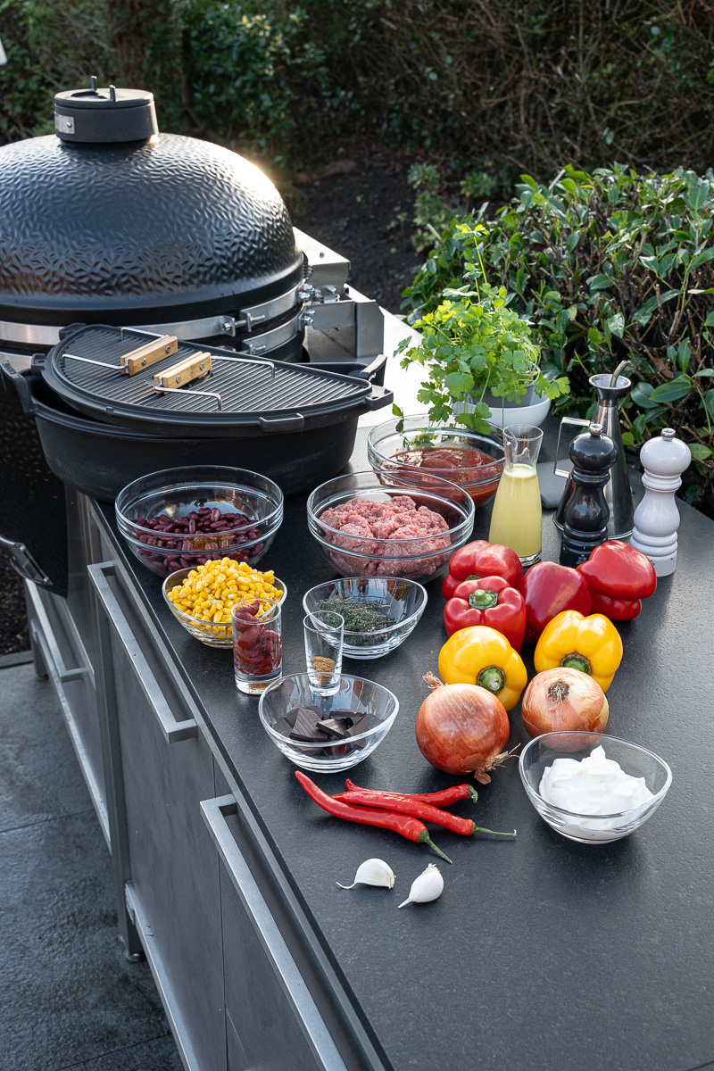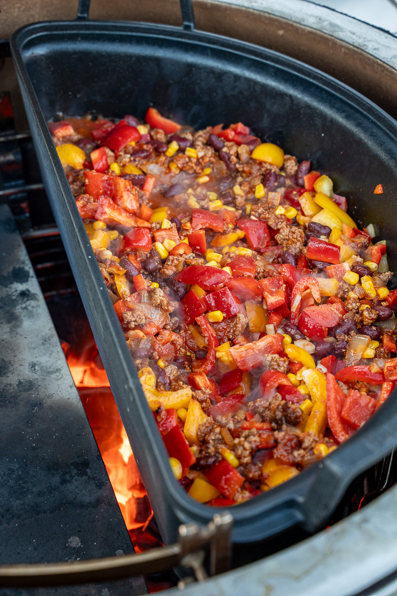 Zubereitung des Chili con Carne aus dem Monolith SGS Feuertopf
