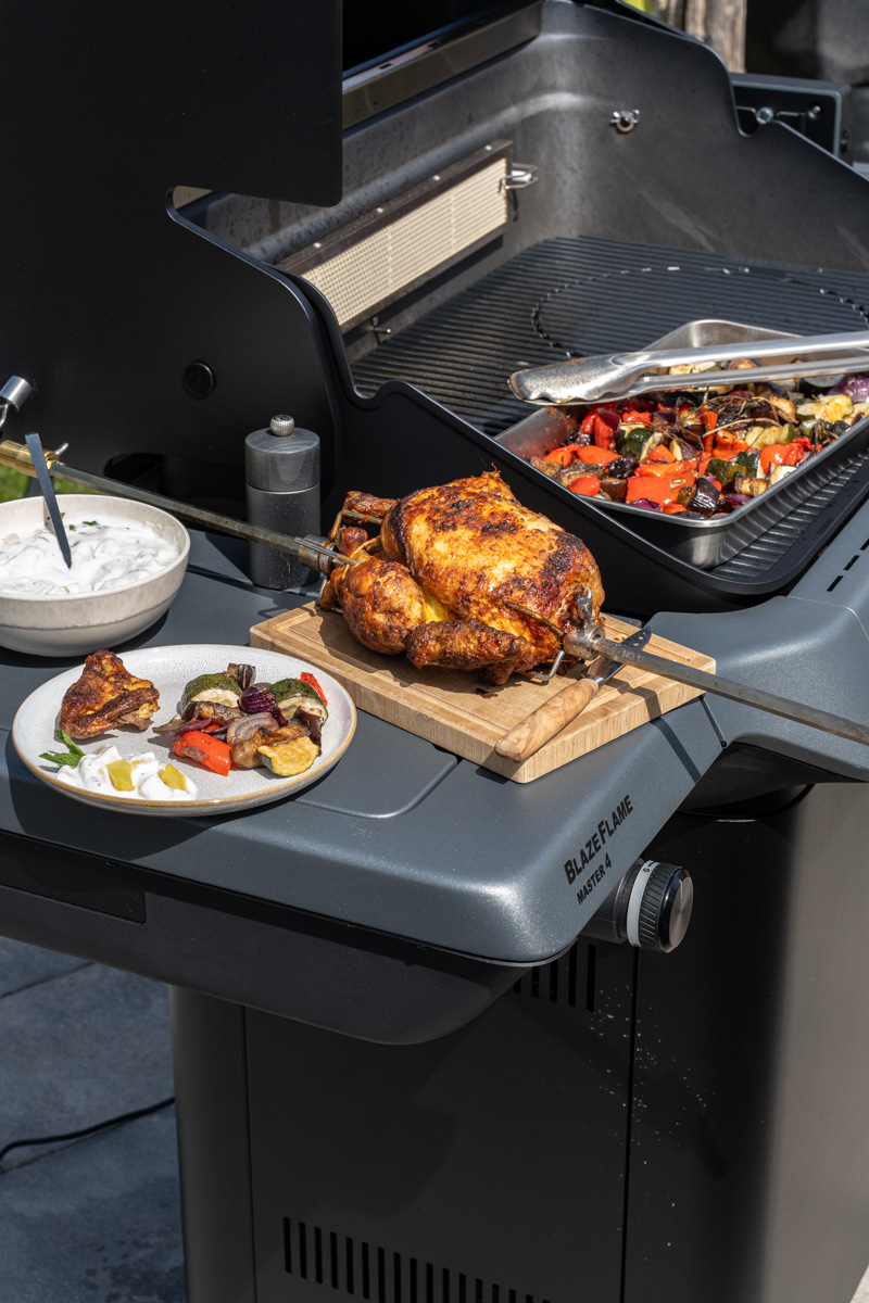 Zubereitung des Drehspieß-Hähnchens vom Rösle BLAZEFLAME Master 4