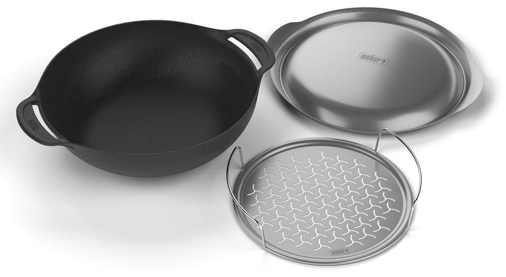 Das Weber Wok Set 2017 vereint durch den neuen Einsatz und der Abdeckung die „Funktion“ Dünsten und Braten.
